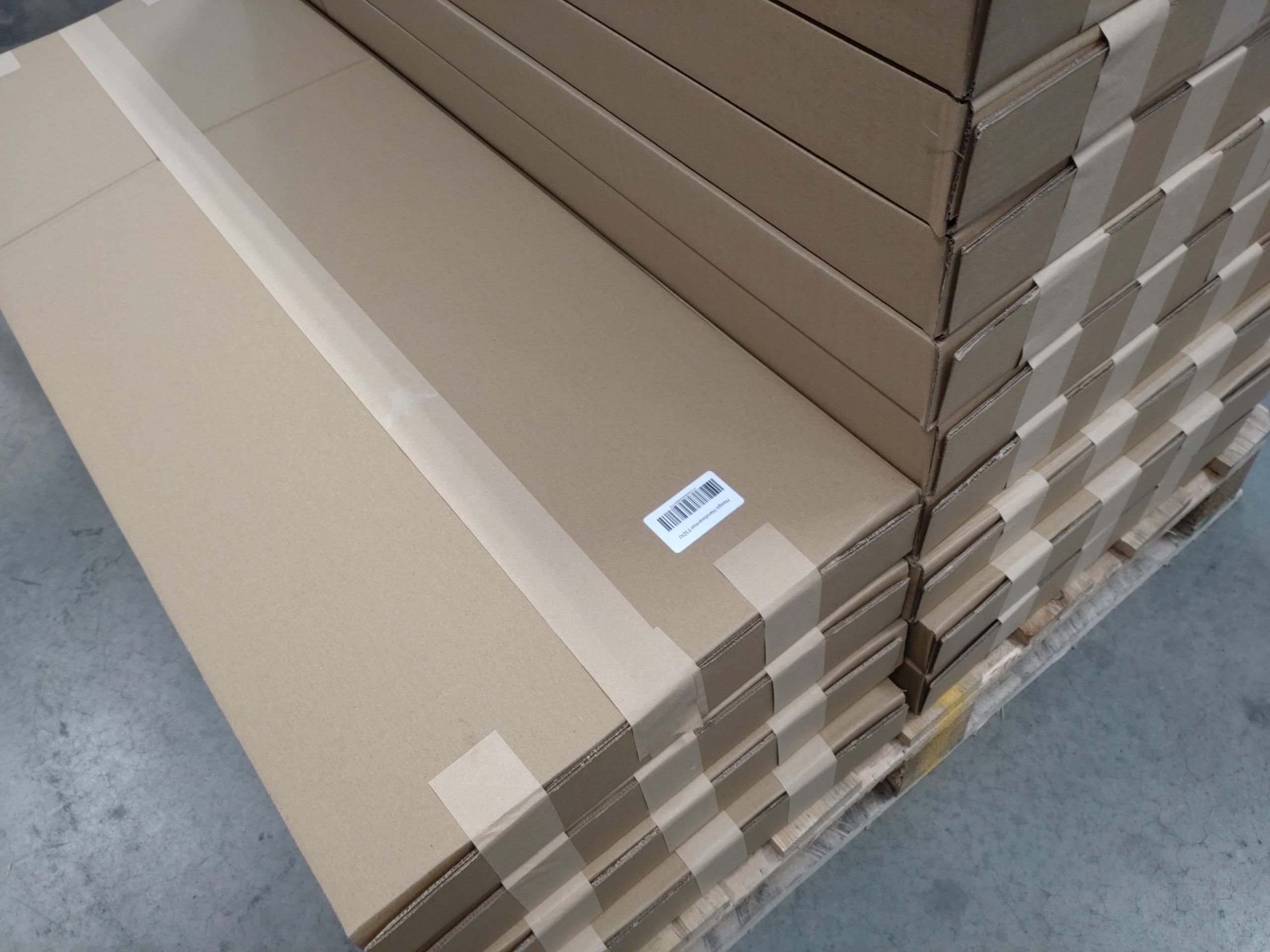 They are designed to go flat pack for easy in-store assembly. This keeps packaging and transport to a minimum and we also use plastic-free packing tape.
