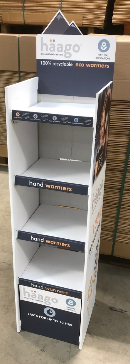 Engineered in cardboard the units can be recycled at the end of their in-store life.